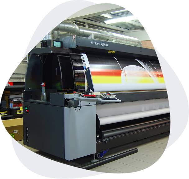 Digital printing system for printing a wide range of superwide-format applications. These printers are generally roll-to-roll and have a print bed that is 2m to 5m wide. Mostly used for printing billboards and generally have the capability of printing bet.