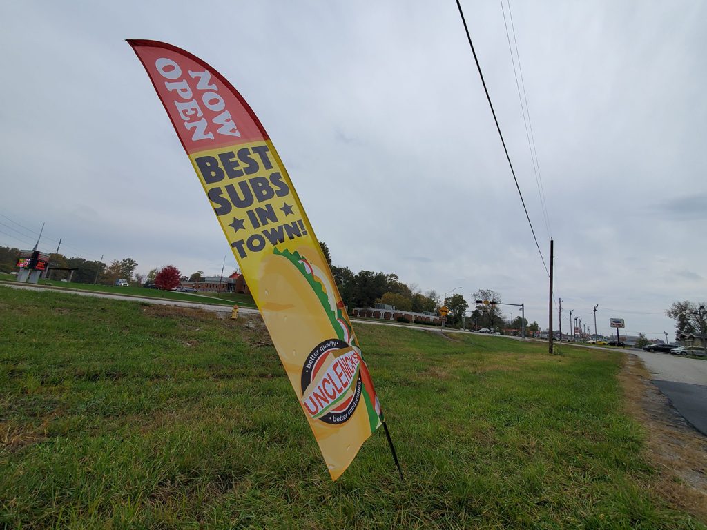 - 5 ft long flag and 6 ft long kit – this is a great option for small businesses that are looking for an affordable way to get started.